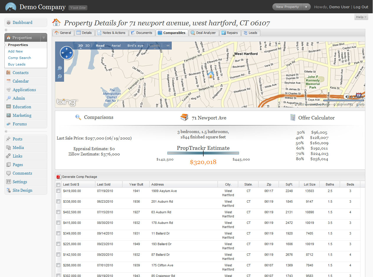 Have you ever seen a property that you wanted to flip but were unsure whether it would turn a profit? With PropTrackr Web-Based Real Estate Management Software you can enter your estimated expenses into the Deal Analyzer and see if there is a profit to be made. Analyze everything from real estate commissions, points for a loan, seller concessions, attorney fees and more. Find out if the potential investment property is worth your time and effort. Then jump over to PropTrackr Comparison Packages and see what similar homes in the area sold for. |