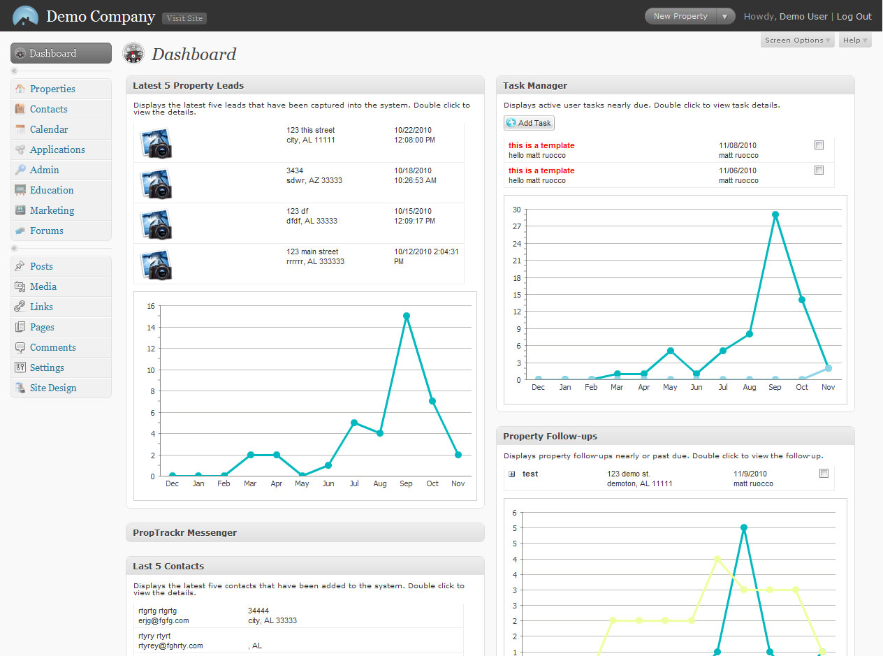 PropTrackr Real Estate Management Software has an easy to read dashboard to display the information that is most useful to you and your business. Find out what’s going on with today’s schedule by quickly reviewing the most recent tasks, review the latest property leads, contact information, task manager and more right from the Dashboard. The Dashboard is simple, clean and easy to understand making your real estate business more productive than ever before!