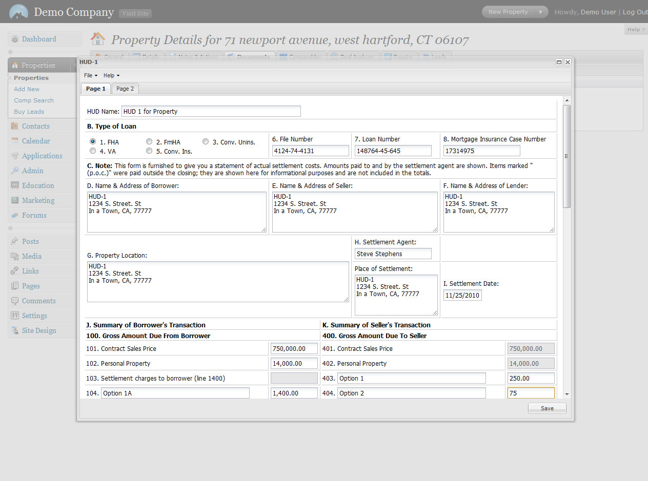 PropTrackr Real Estate Management Software comes with our very own HUD-1 Creator. NO Monthly Charge, NO Limit to the number of HUD-1 Documents the end result is a Professional HUD-1 Settlement Statement in PDF format. The HUD-1 Creator also has an easy to use help system for anyone not comfortable with filling out a HUD-1. We’ll tell you exactly what goes in each field to make your life that much easier.